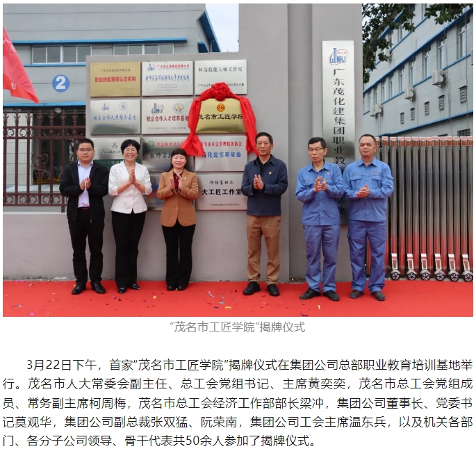 首家(jiā)“茂名市(shì)工匠學(xué)院”在茂(mào)化建正(zheng)式揭牌(pái)成立!