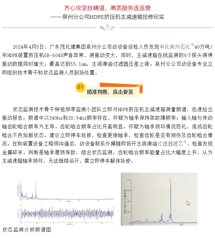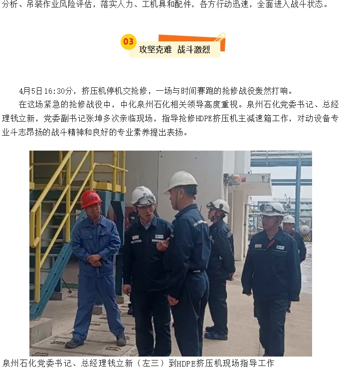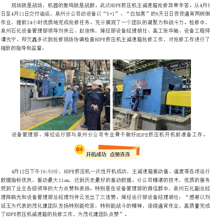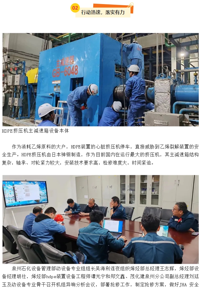 泉州分公司HDPE擠壓(ya)機主減速箱搶修(xiū)紀實