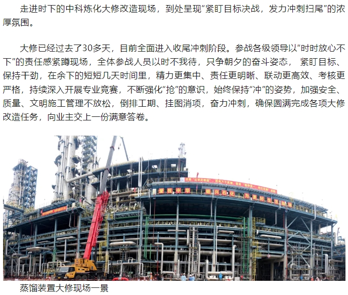 緊盯目标決(jué)戰 奮力沖刺掃(sǎo)尾——走馬2024年中科(ke)煉化裝置大💋修(xiu)☔改造大會戰現(xiàn)場