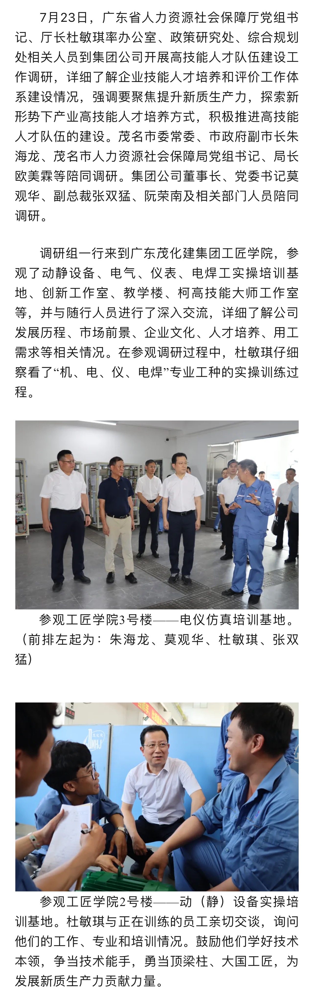廣東(dōng)省人社(she)廳到集(jí)團公司(si)調研高(gao)技能人(rén)才隊伍(wu)🤟建設工(gōng)💰作